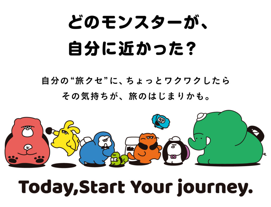 旅が大好きで、でもちょっと愛すべきクセがある8匹のモンスターたち。略して「タビモン」。 旅に出ると、クセが出る。 はじめての海外でド緊張するフアンクマ、 宿を取らずに歩き出すトボネコ、 現地の人に話しかけすぎて集合に遅れるウサピョコ—— 旅に出れば、きっと、あなたのクセも見えてくる。 さあ、あなたはどのタビモンに似てる?